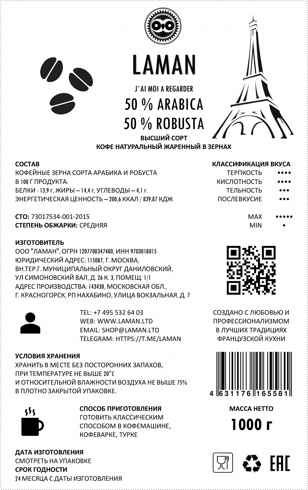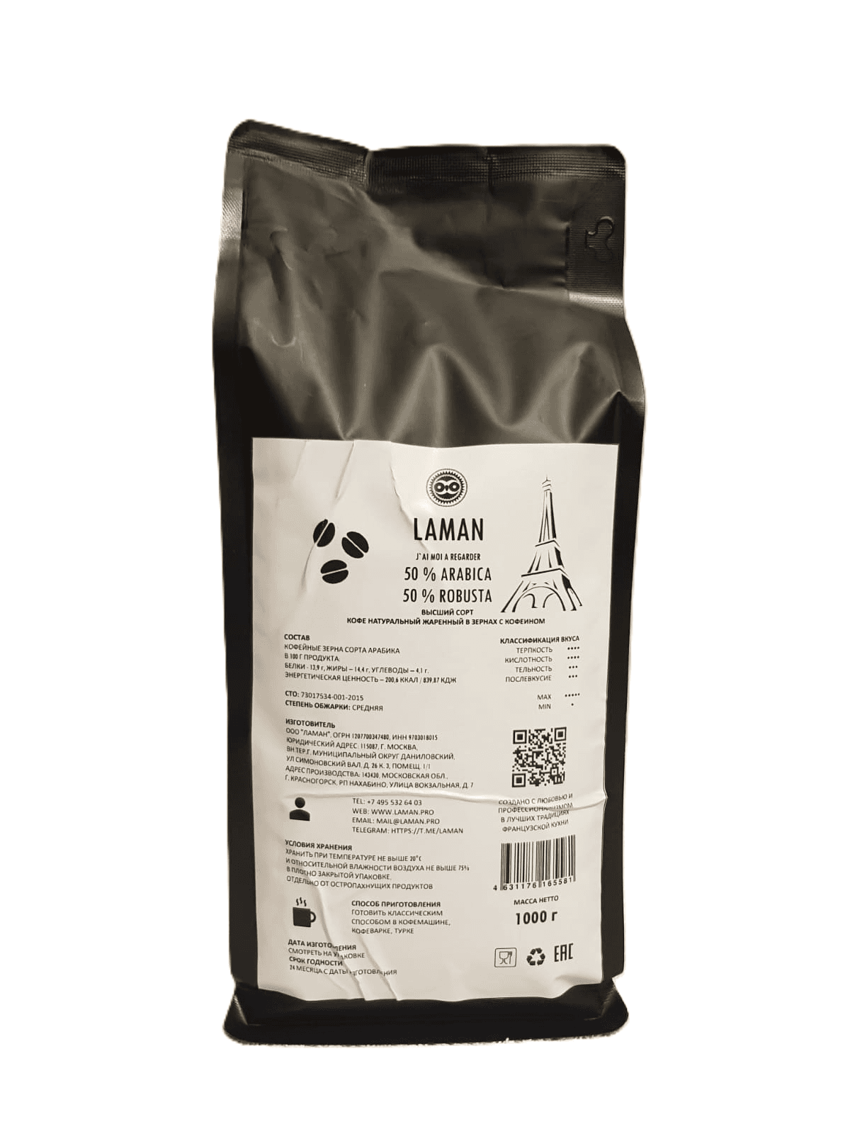 50 % ARABICA 50 % ROBUSTA LAMAN1500 ₽50 % ARABICA 50 % ROBUSTA TOP GRADE NATURAL ROASTED COFFEE BEANS WITH CAFFEINEBuy